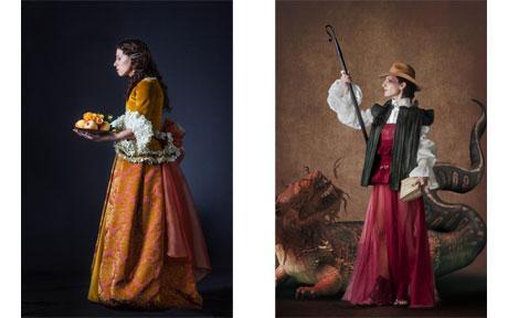 Models inspired from paintings by Zurbarán : Saint Dorothea (by María José Predrosa) and Saint Margaret (by Francis Montesinos). Photographs by Fernando Ruso (exhibition at Espacio Santa Clara, Sevilla).